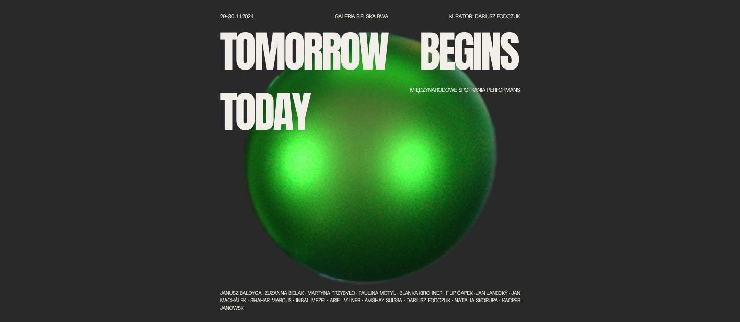 Tomorrow Begins Today, using the artistic and didactic experiences of the creators involved in the project, has the ambition to become a platform for reflection on shaping the methods and ways of teaching performance art. Outstanding performance artists with significant didactic achievements and students selected (nominated) by them are invited to the project. The intention of the project creators is to compile statements in the language of performance art, referring to ideas about the future and their impact on the present, perceived from the perspective of different artistic practices in the context of dramatic ecological, geopolitical and cultural changes and threats.